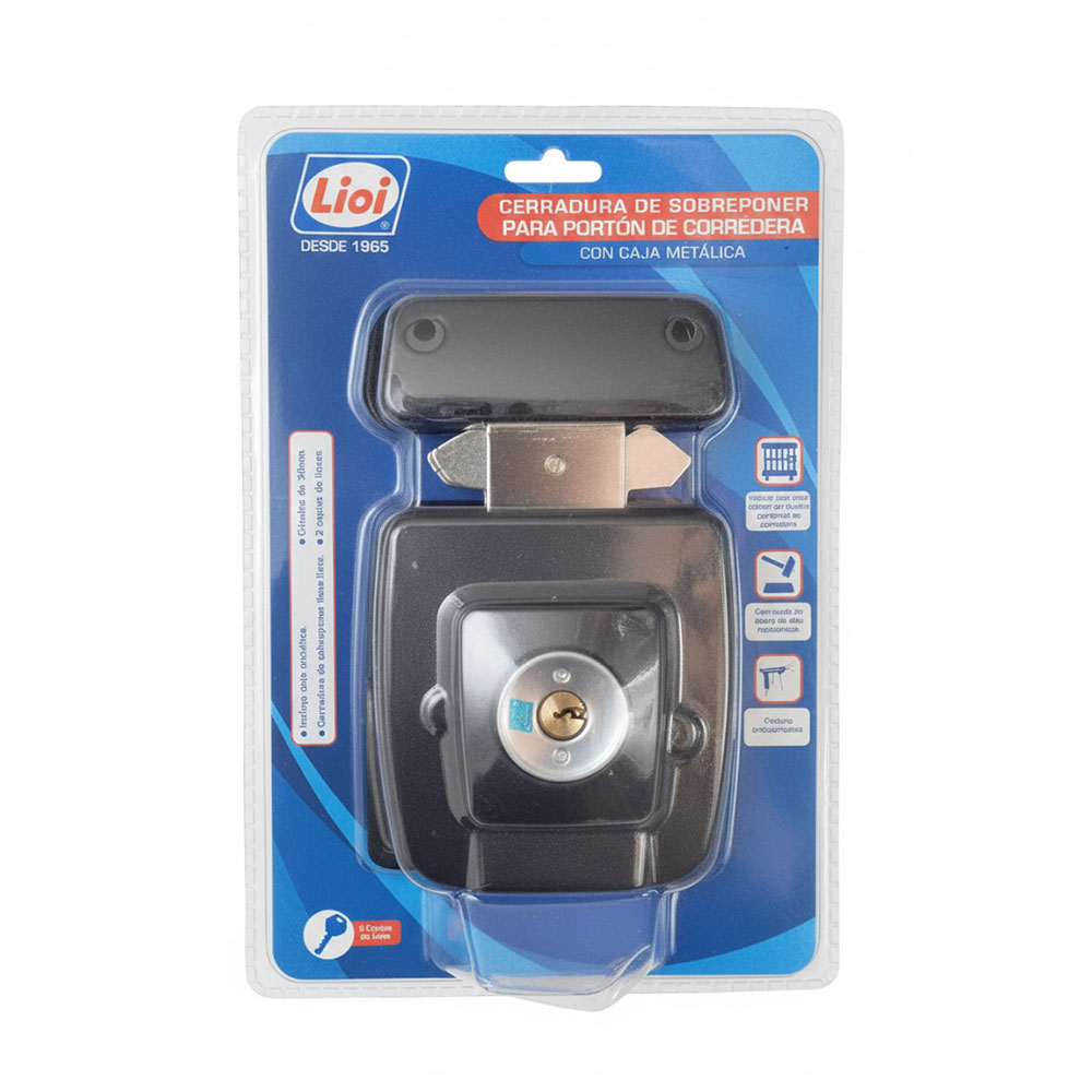 Compra la Cerradura de Sobreponer Lioi para portones de corredera. Instalación fácil, caja metálica, máxima seguridad. ¡Protege tu hogar!
