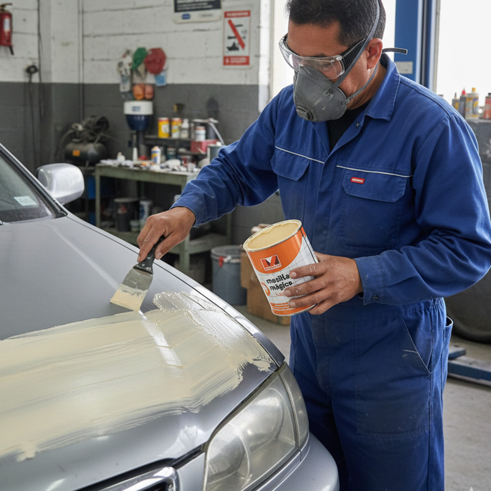 - Excelente Adherencia: Formulada para anclarse firmemente a metales y otras superficies comunes en reparaciones automotrices e industriales.