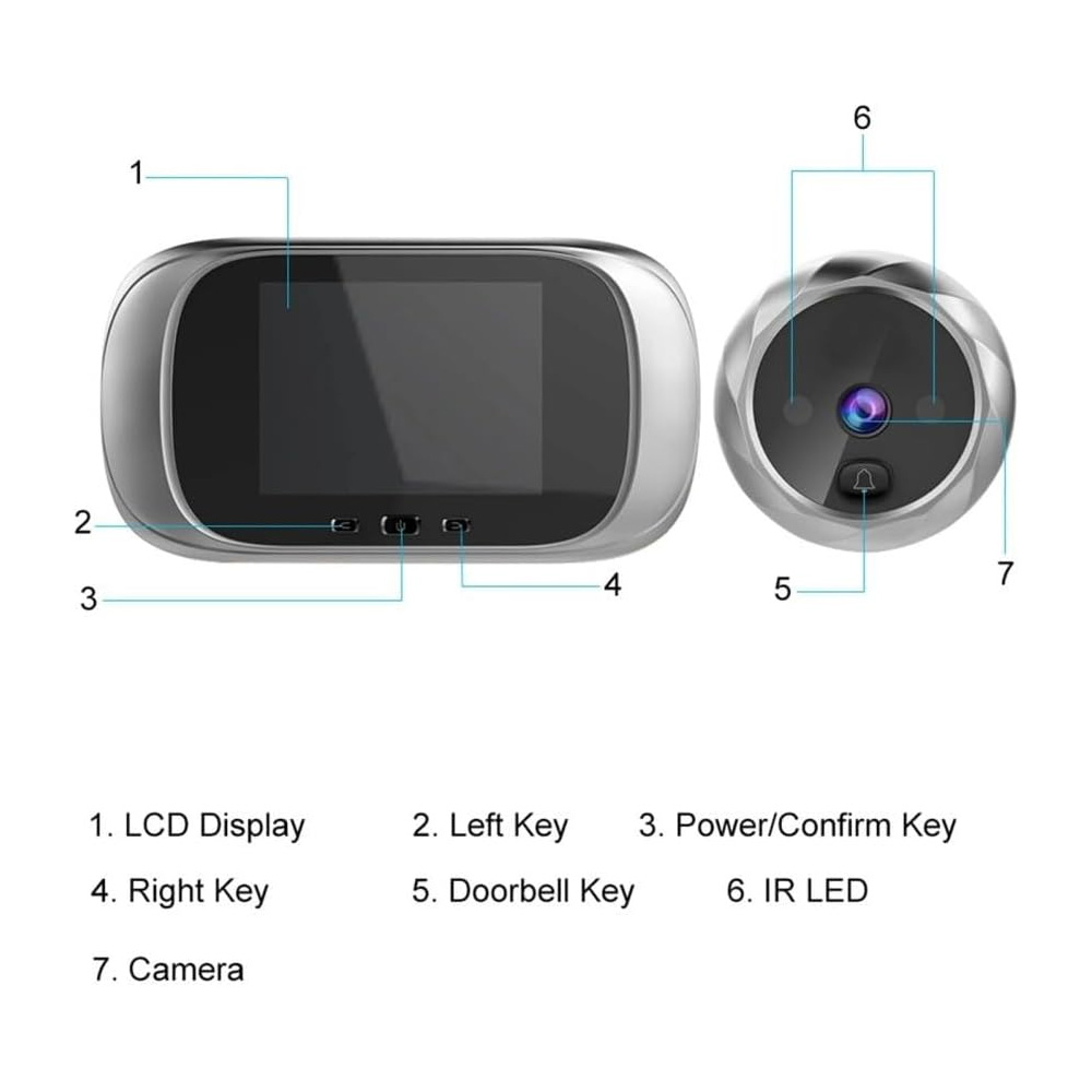 - Comodidad y Privacidad: Visualiza a tus visitantes desde una cómoda distancia. La pantalla LCD te ofrece una imagen nítida y te permite ver sin que la persona exterior sepa que estás mirando.